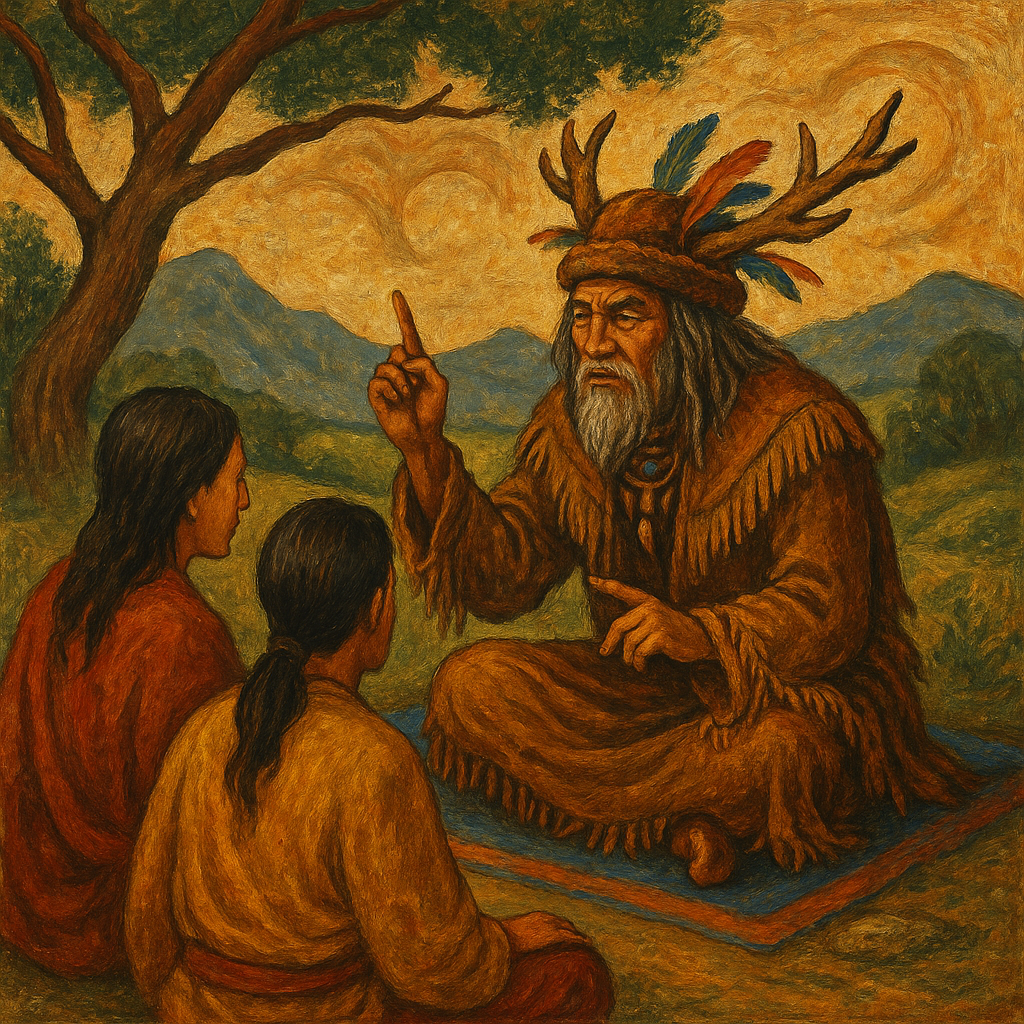 Ученики, запомните: истинный путь — не в спешке и не в медлительности, а в том срединном шаге, где действие рождается естественно, как дыхание. Шаман не бросается вперёд и не медлит — он входит в момент сразу, когда увидел верный шаг. Промедление разрывает силу, спешка ломает ясность, но срединный путь оставляет дух острым и неподвижным. Поэтому, когда видишь верный шаг, сделай его сразу — не торопясь, не задерживаясь, просто точно, как струя света, перерезающая тьму. Здесь и раскрывается настоящая мощь.