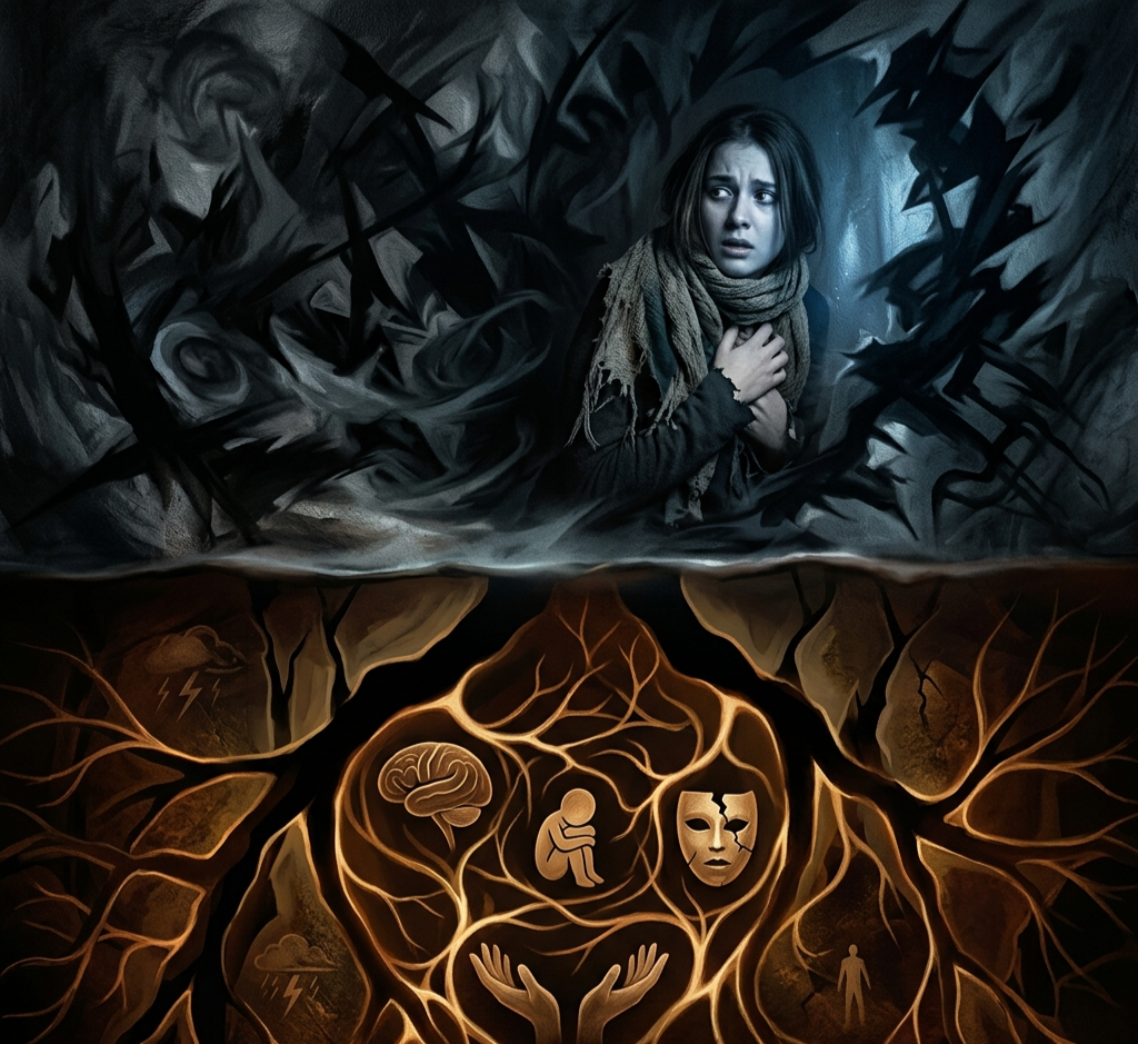 Первый — биологический страх. Тело на краю пропасти. Машина несётся навстречу. Хищник в темноте. Этот страх — инструмент выживания. Древний. Точный. Он не требует работы с ним — он делает своё дело и уходит. Его не нужно трансформировать. Нужно слушать.